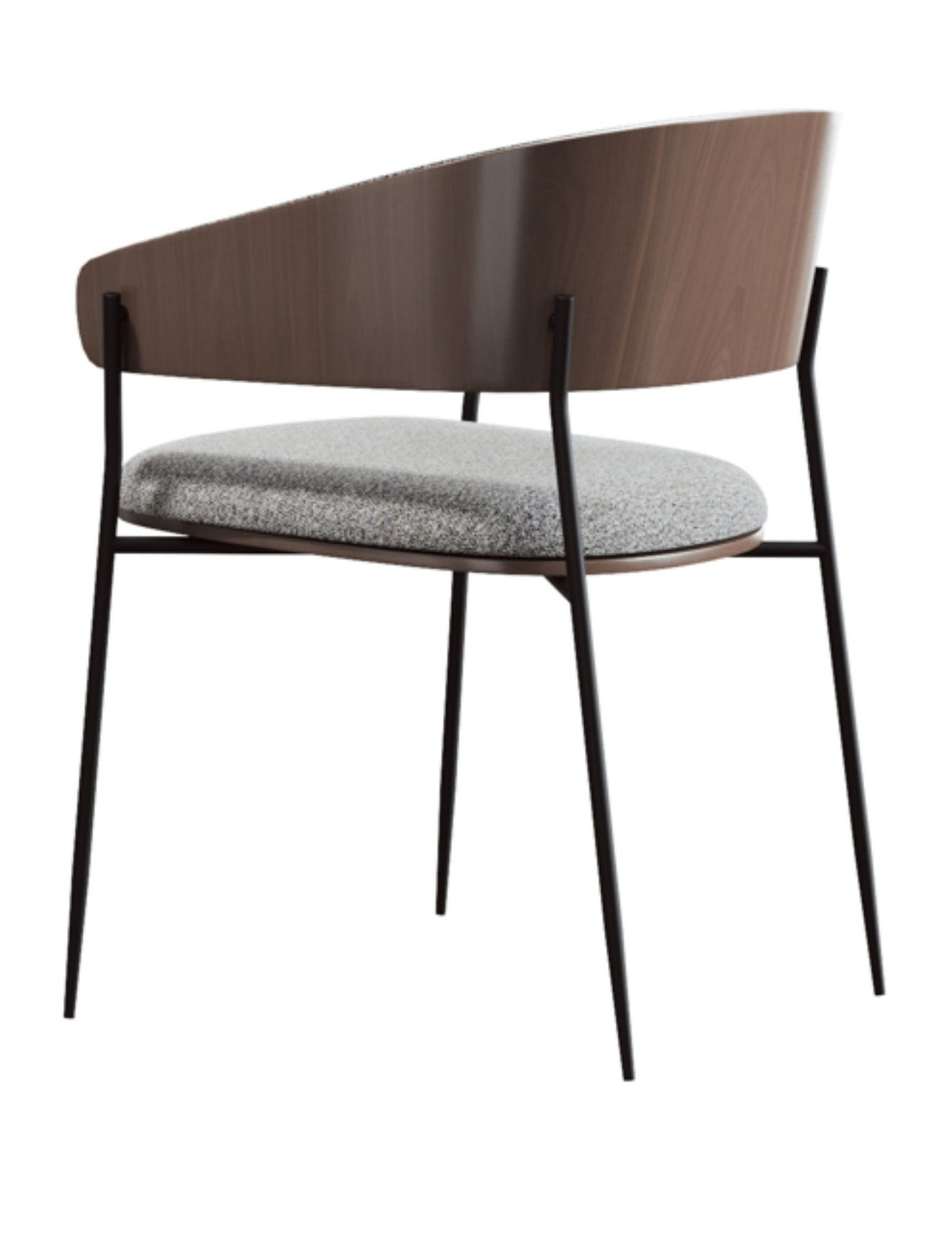 The Liam Chair features Curved plywood back with walnut veneer Adds enduring sophisticated look to any space.